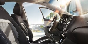 Кресла на первом ряду не поменялись — посадка, как и раньше, довольно комфортабельная, хотя наклон подушек чуть больше, чем надо, как и угол наклона спинки задних сидений. Обзорность у переднего пассажира прекрасная, так как подоконник низковат, а в крыше есть «мансардное окно» со сдвижной секцией, а вот на водительском месте с обзорностью не все так радужно: мешают широкие стойки спереди с бессмысленными окошками треугольной формы.