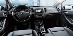 В салоне Cerato 2017 минимум доработок, по сравнению с дорестайлинговым автомобилем. Рычаг АКПП получил черно-глянцевую отделку, у его основания изменились кнопки, а немного ниже наблюдается центральный тоннель с выштамповкой под смартфон. Боковые дефлекторы вентиляции теперь имеют хромированную окантовку, а блоки климатической и мультимедийной систем обзавелись другими кнопками. Качество отделки осталось на том же высоком уровне, что и раньше. Большая часть панелей по-прежнему выполнена из мягкого пластика — в плане отделки новинка не уступает даже соплатформенному Hyundai Elantra. К эргономике тоже вопросов нет: здесь все достаточно продумано. Передние сидения средней жесткости с удобным профилем рассчитаны на людей самого разного телосложения и обладают функцией регулировки.