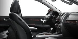 Передние кресла не могут похвастаться идеальной посадкой, но к ним быстро привыкаешь. Водительское место — с регулировкой поясничного подпора. Для отделки сидений внедорожника впервые использована стеганая кожа Nappa с перфорацией — правда, это привилегия самого дорогостоящего варианта Premium, как и подлокотник с охлаждаемым боксом для напитков.