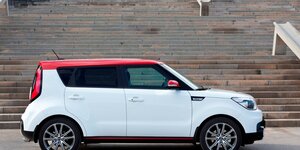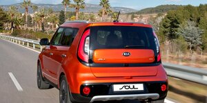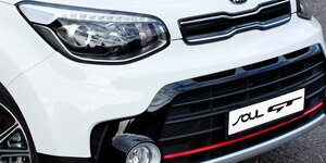 В результате обновления хэтчбек получил совершенно новую решетку радиатора (в начальной комплектации Soul дизайн решетки другой), доработанные бамперы, видоизмененную головную оптику со светодиодными ходовыми огнями в верхней части (у базовой версии ДХО расположены снизу), а также 18-дюймовые легкосплавные диски колес с оригинальным рисунком (резина 235/45 R18), наружные зеркала с красными колпаками, дверные пороги с линией красного цвета и задние стекла с достаточно плотной заводской тонировкой. Фары головного света — только с линзованным галогеном, LED-оптика и ксенон в исполнении GT, увы, не доступны.