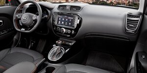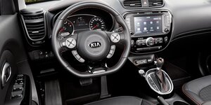 Комбинация приборов — с классической компоновкой. По бокам — аналоговые «колодцы» спидометра и тахометра, а посередине — далеко не самый маленький информационный дисплей. На потолке отсутствует доступная для других комплектаций Soul панорамная крыша, зато имеется кнопка «Эра-Глонасс». USB-входа три: два для водителя и переднего пассажира и один для задних пассажиров.