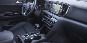В начальной комплектации Sportage 2016 предлагается информационно-развлекательный комплекс HMI с 5-, 7- или 8-дюймовым экраном. 320-ваттный аудиоцентр JBL с тачскрином, 7 динамиками, сабвуфером, Bluetooth и навигацией Tom-Tom— привилегия топовой версии. Качество звука у него отличное, но изображение могло бы быть и получше, а время отклика навигационной системы — побыстрее. Для изменения масштаба выделена отдельная шайба, что в пути гораздо удобнее, чем водить пальцами по дисплею.