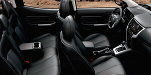 На смену давно устаревшему 2,5-литровому движку 4D56, выдающему 178 л.с. и 350 Нм крутящего момента, пришел рядный 4-цилиндровый турбодизель 4N15 MIVEC объемом 2,4 л. с электронным прямым впрыском топлива Common Rail. Новый, полностью алюминиевый двигатель соответствует экологическому стандарту Euro-5 и развивает 154 л.с. и 380 Нм, либо 181 л.с. и 430 Нм, в зависимости от модификации. В первом случае паспортный средний расход топлива составляет 7,1 л/100 км, а во втором — 7,5 л/100 км, однако следует иметь в виду, что реальные цифры могут оказаться выше. Базовый 154-сильный вариант дизеля сочетается с фирменной 6-скоростной МКПП или с пятиступенчатой коробкой-автоматом японской марки Aisin, а топовый вариант с отдачей в 181 л.с. работает в паре исключительно с АКПП. «Автомат», между прочим, с подрулевыми переключателями. Зачем они пикапу? По всей видимости, дань моде, не более того.