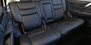 Учитывая, что новый Pajero Sport — далеко не бюджетник, наличие жесткого пластика на торпедо и теснота на первом ряду сидений в салоне кажется, мягко говоря, странным и несправедливым обстоятельством. Также не хватает розеток на 12 Вольт, USB-разъемов и мест для хранения мелких предметов — в частности, для смартфонов. Для размещения мобильных устройств здесь подойдет разве что подстаканник. Зато сзади просторно, на центральной консоли красуется крупный экран «мультимедийки», совместимой с Apple CarPlay и Android Auto, а для удобства задних пассажиров установлены управляемые воздуховоды (только на машинах 2017 года выпуска). Передние кресла получили удлиненные подушки и более развитую боковую поддержку, за счет чего они сами по себе очень комфортабельные. А вот задний диван не слишком уютный, поскольку посадка у него низкая, а его регулируемая спинка отличается выталкивающим профилем и выпирающими по краям углами, да и кнопка обогрева дивана неудачно расположена рядом с подстаканником на двери. Отделка сидений — тканевая или кожаная (зависит от комплектации).