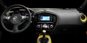Внутри Juke ничего не поменялось, за исключением «фишек» из программы персонализации. Так, центральный тоннель, напоминающий топливный бак спортивного мотоцикла, может быть выполнен в желтом или красном цвете (доступны и другие цветовые решения — черный и белый). То же касается круглой окантовки дефлекторов вентиляции, расположенных по бокам торпедо, внутренних ручек дверей, а также прострочки руля и сидений. Яркие цвета смотрятся неплохо, но жаль, что их нельзя менять так же часто, как корпус или чехол у смартфона. Качество накладок в целом достойное, но вставки на ручках дверей слегка «люфтят», что немного портит впечатление. Салон кроссовера не самый просторный в классе: на заднем диване с относительным комфортом разместятся только два взрослых пассажира, а третий влезет разве что при наличии очень скромной комплекции. Лучше всего 2-й ряд подойдет для детей — в таком случае и втроем уместиться получится, и места для коленей хватит более чем. На передних креслах просторнее, чем сзади, да и удобств там больше. Имеется свой «климат», обогрев, а еще есть подстаканники и USB-порт для зарядки гаджетов.