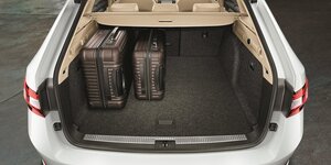 В нашей стране Superb Combi III предлагается с пакетом для плохих дорог, в котором предусмотрены пассивные амортизаторы и 164-миллиметровый клиренс, а также с подогреваемыми сиденьями и наружными зеркалами, опциональным стояночным отопителем с дистанционным управлением и обогревом руля/ветрового стекла, раздельным климат-контролем и багажником с минимальным объемом в 660 л. При сложенном заднем диване вместительность багажного отделения достигает внушительных 1950 л. В грузовой отсек ведет проем высотой примерно в 1 м, а дверь при наличии опционального датчика открывается в автоматическом режиме — достаточно провести ногой под задним бампером. Подполье багажника двухуровневое — в самом низу спрятана докатка, а над ней расположен просторный отсек для хранения инструментов.