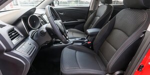 К суровой русской зиме XLV подготовлен неплохо, но совсем не на «пятерку», потому что в наших широтах без обогрева лобового стекла «пятерки» не бывает, да и клиренс маловат — по факту под днищем всего 153 мм, хотя производитель и заявляет 167 мм. В корейском кроссовере, в зависимости от комплектации, подогреваются боковые электрозеркала, руль и сидения (и спереди, и сзади). Вдобавок, доступен раздельный климат-контроль (в «базе» стоит обычный кондиционер). Полноразмерная запаска, без которой в российских реалиях никак не обойтись — привилегия дорогих комплектаций, а у базового варианта — докатка на стальном диске. Защита моторного отсека — просто формальность. Это всего-навсего пластиковая накладка с вентиляционными отверстиями. Штатный аккумулятор обладает емкостью в 65 Ампер-часов и может быть заменен более крупным — размера площадки для нового аккумулятора предостаточно.