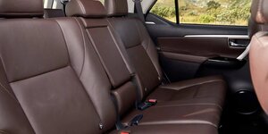 Задним седокам в салоне Fortuner от дискомфорта страдать не придется, так как их сидения способны перемещаться в продольном направлении, у спинок меняется наклон, а еще имеется своя отдельная система кондиционирования воздуха. Спинки кресел 1-го ряда снабжены складными крючками, а между подушками сидений размещена 12-вольтная розетка для зарядки гаджетов и ниша, которая подходит для хранения смартфона или небольшого планшета.