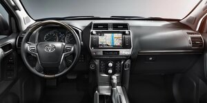 В России Prado продается с 5- или 7-местным салоном. В результате рестайлинга у модели появился новый вариант цветового решения интерьера — коричневый (раньше интерьер предлагался только в темных или светлых тонах) со вставками «под алюминий», заменившими собой классические вставки «под дерево». Больше ощутимых нововведений нет, в остальном все по-старому: та же качественная отделка и сборка, та же продуманная эргономика, те же удобные кожаные кресла. Сидя на водительском месте Prado можно с уверенностью сказать: «высоко сижу — далеко гляжу». Обзорность здесь великолепная, а посадка — комфортная, за что следует поблагодарить широкий диапазон электрорегулировок и рулевую колонку с регулировкой по наклону и вылету. Руль — мультифункциональный, с кожаной оплеткой и кнопками управления аудиоаппаратурой. За ним стандартно расположена приборная панель, выполненная в виде двух глубоких «колодцев» спидометра и тахометра с дисплеем трип-компьютера посередине. «Картинка» на дисплее контрастная, четкая и читается без проблем.