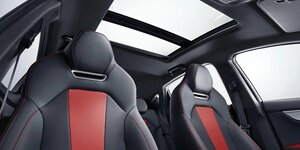 • Кожаная отделка сидений черного цвета с декоративной прострочкой, перфорацией и декоративными вставками