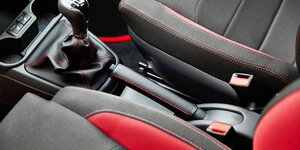 • Отделка руля, чехла КПП кожей с красной отстрочкой